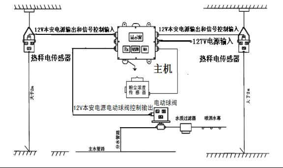 人通過灑水區(qū)域后,熱釋光控傳感器無信號輸出,延時所設(shè)定的時間后,電動球閥開啟繼續(xù)噴霧??膳c煤礦監(jiān)控系統(tǒng)聯(lián)機,實現(xiàn)粉塵濃度狀況井上傳輸。